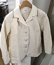しかし、この丈の短さ、やわらかい生成りのカラー 着てみると全てが絶妙。 ペイズリー柄のジャガードも、ほどよく 力が抜けていいかんじ。
