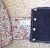 ヨーロッパのバカンス気分で、 こんなリゾートアイテム。 ストレッチデニムのビスチェとホットパンツの two piece。 ちらりと見える裏地とくるみ釦はリバティ柄。 白いステッチが効いてたまらない、 海辺が恋しくなる・・・ サラウエアのとっておきです。