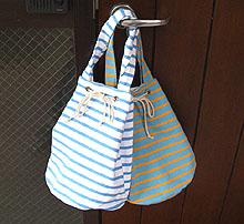 前回人気の高かった、ボーダーのトートバック。 春夏はハト目使いのきんちゃくタイプで登場です! ひもを絞らずに丸底トートとしても使えます。
