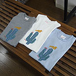 前回のwhat's newで気になった方 も多いのでは? アップリケのいかり君、実はTシャツ だったのです。他にもサボテンや にわとりなどいろいろあります。 手描き風の素朴なタッチが なんともいえません。 |