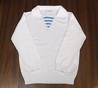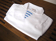 スキッパーのフロント部分は、 サックスブルーとのボーダーカラー。全4色です。