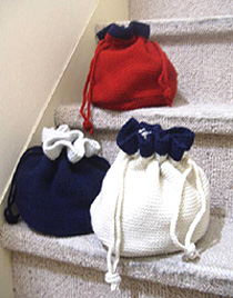 ありそうでなかった、手編み風 ニットの きんちゃくBag。 丸々とした形が、かわいい。