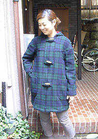 ブラックウォッチチェックの内側はレッド、 大きなポケットに、肩にかかる丸いヨーク、、、 どこをとってもかわいい。 しかも、背裏地はキルティング加工なので、 すごくあったかくて着ごごちも最高です。