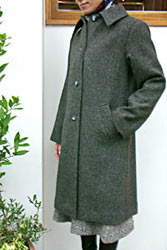 そのなかでも、ハリスツイードのコートは軽くてあたたかく人気があります。 サラのコートの中では、カジュアルというよりもシックな感じでしょうか。長く愛用していただけるコートです。 一見、普通のステンカラーコートのようですが、少し大きい襟と襟元にはいったダーツが、クラシックな雰囲気ときれいなシルエットをつくりだしています。