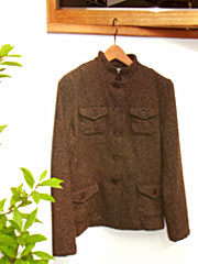 厚手ヘリンボーンのパンツ。とっても細身でキレイ!少しごわっとした感じの素材感がなんともいいのです。すそはひもで軽くしぼるタイプ。 ハンドメイドのざっくりニットと組み合わせて、ちょっとやぼったい雰囲気で。 同素材のジャケットもあり。Gパンとあわせても、厚手コットンの長めボリュームスカート+ブーツの着こなしもオススメ。 パンツ ¥11,800 ニット ¥29,800 ジャケット ¥16,800