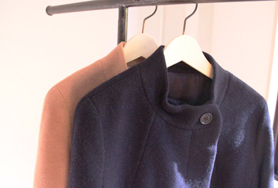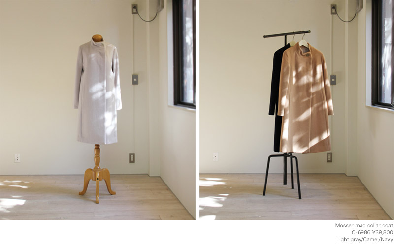 今回ご紹介するマオカラーコートはオーソドックスな形で、サラの定番です。
