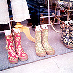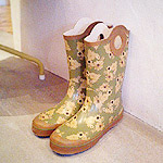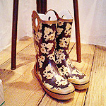 この頃、雨の日が多いですね。 最近はおしゃれに長靴を履きこなす人をよく見かけます。 クラークスの長靴は大胆なデザイン。 大きめの花柄が目を惹きます。 雨の日の楽しみが1つふえますね。