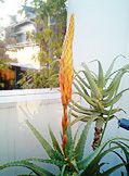 アロエの花が咲きました!! 植物学的にわかりませんが、 つぼみの状態と形状は同じですがOrangeに変化しています。 この状態を勝手に咲いたと言っております。 前の写真と見比べて下さい。