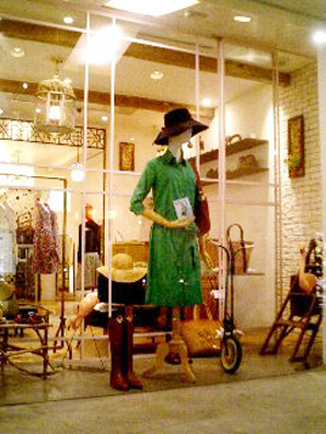 お盆中の自由が丘のショーウインドウを撮ってみました。 前回のWhat's Newで8月末に上がるとお伝えしたグリーンのペイズリー柄スカートですが お盆中に店頭にに入ってしまいました。 すでにお買い上げのお客様にはありがとうございます。 思わぬ反響の為追加生産に入りました。 よろしければ左の写真をクリックして下さい。